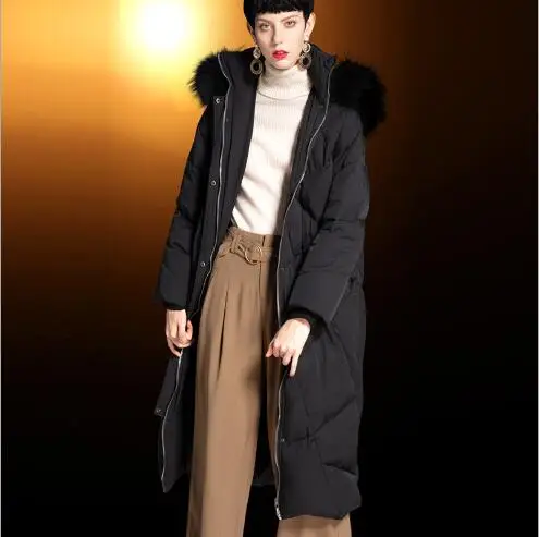 Зимнее женское длинное пуховое пальто, плотные теплые топы