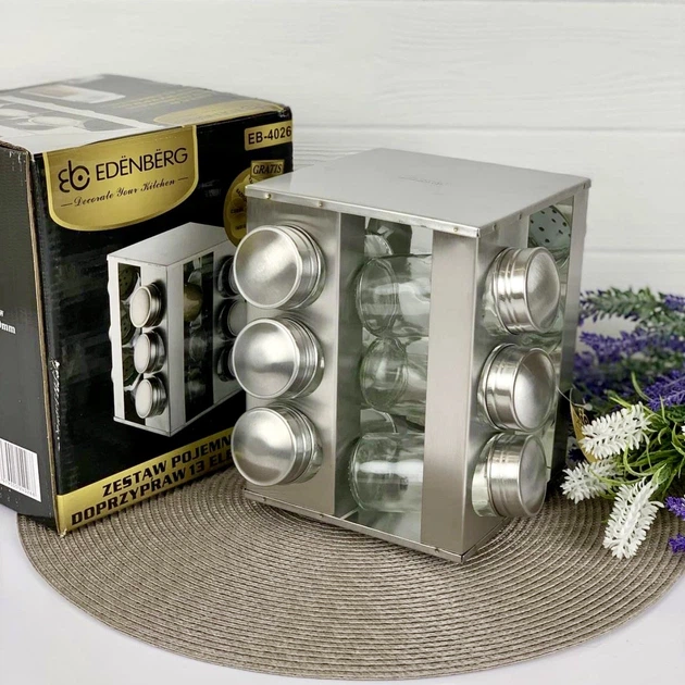 Набор для специй на подставке 12 емкостей из нержавеющей стали Edenberg