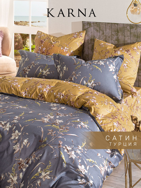 Комплект постельного белья Karna Печатный сатин Евро , наволочки 50x70