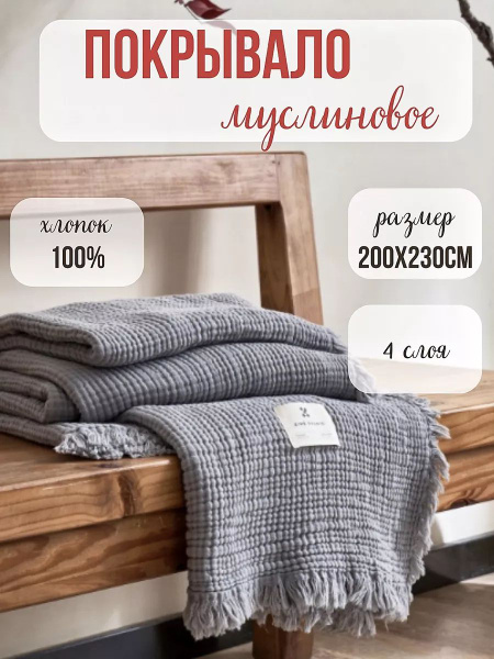 Покрывало из 100% хлопка 200*230, новый, в наличии. Цена: 1 400₽ во