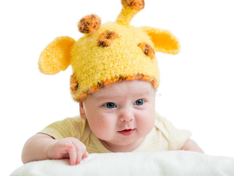 Смешной младенческий ребёнок ребенка в пеленке лежа на задней части и